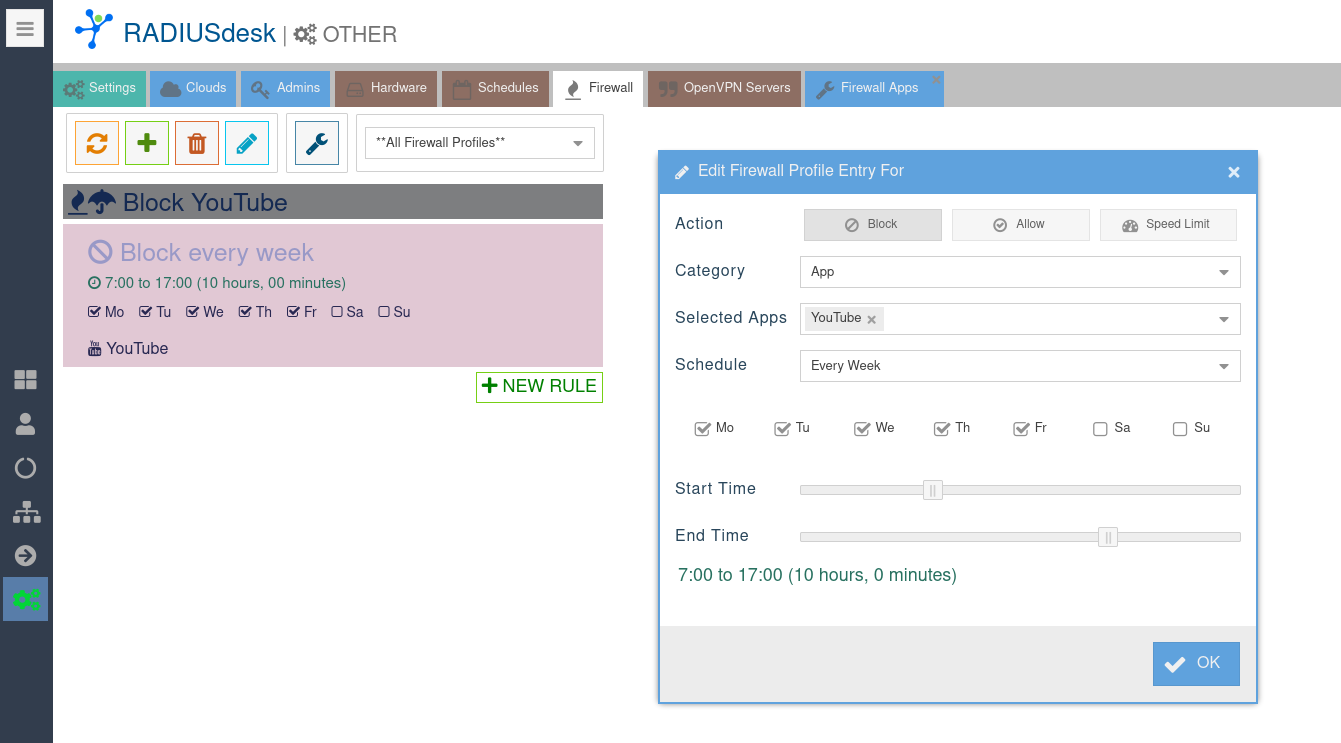 - Firewall Profiles are the most advanced tool available in MESHdesk and APdesk to manage usage.