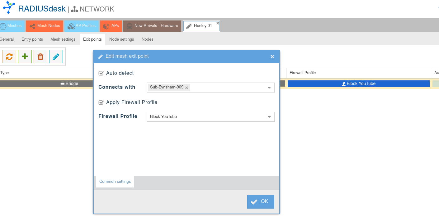 - A Firewall Profile can also be applied to an Exit Point which is defined on a MESHdesk and APdesk network, e.g. a bridge, a NAT/DHCP gateway or a Captive Portal.