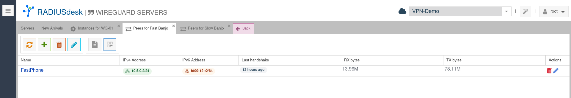 - The agent also reports back to RADIUSdesk on the status of Wireguard and any active peer connections.