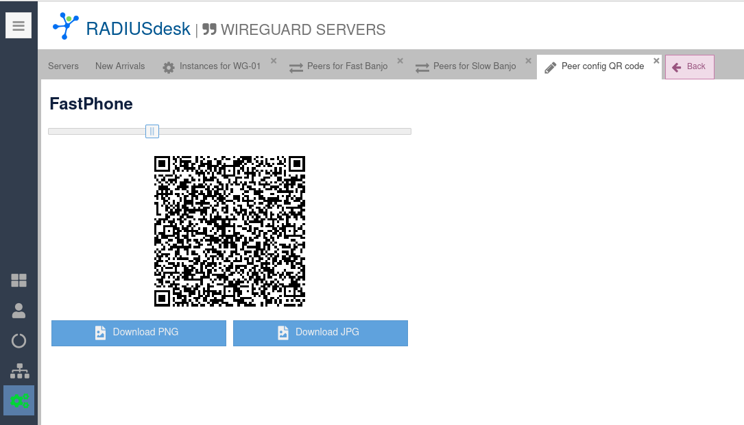 - The config of each Wireguard Peer that has been defined can be downloaded or a QR Code generated for easy configuration.